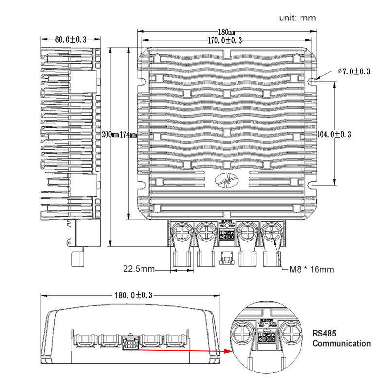 1500 W vodotěsný obousměrný DC-DC nabíječ baterií s komunikací RS485 pro lithiové a AGM baterie napětí 12 V/24 V/36 V/48 V